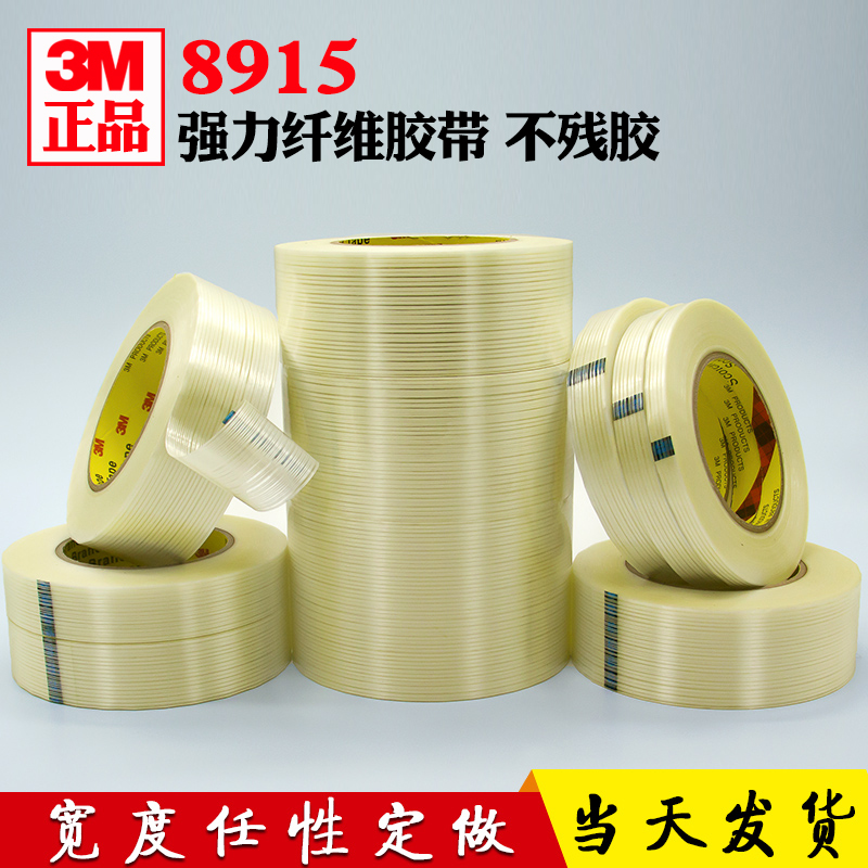 產品應用描述:3M 8915纖維膠帶粘性佳,持久力強,抗張力度極高,可重復使用不留殘膠,有玻璃線,顏色都透明。適用于工業、電子、家電等行業中封緘、捆扎、作業線等銜接固定。如冰箱,電腦,傳真機以及薄鋼板的固定捆扎等。